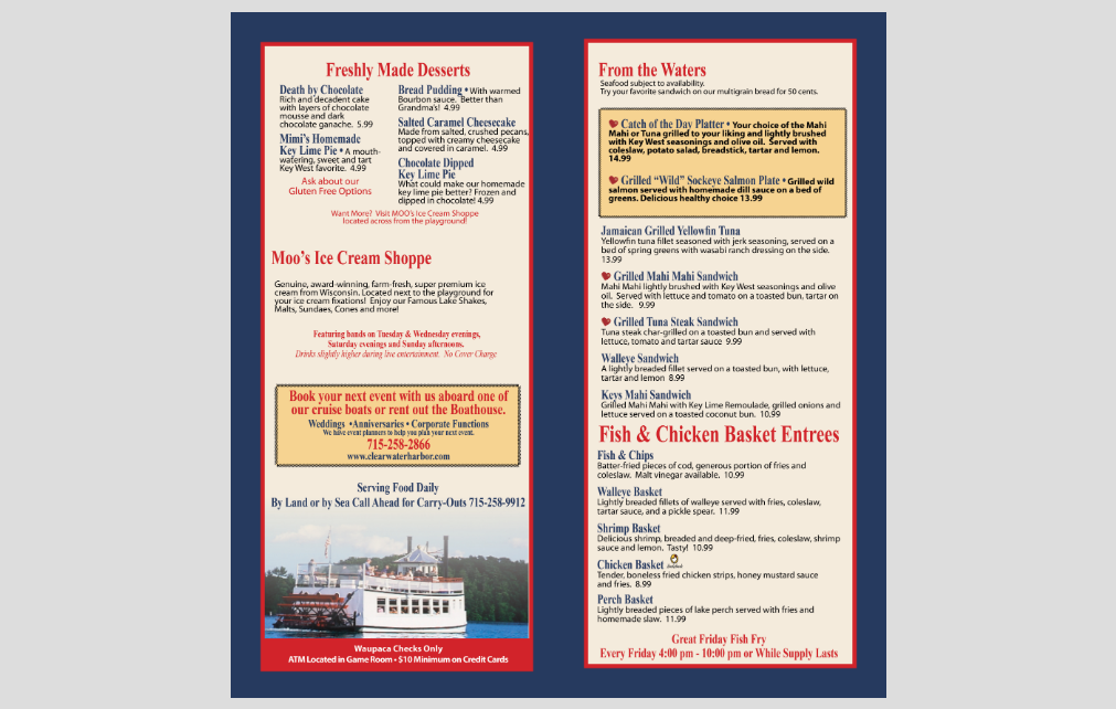 Welcome to Clearwater Harbor Waterfront Restaurant & Bar, where culinary delights meet stunning waterfront views in Waupaca, WI. The menu expertly balances comfort food with gourmet flair, making it a must-visit for both locals and travelers alike.
